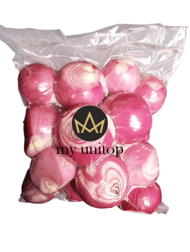 Κρεμμύδια κόκκινα καθαρισμένα σε συσκευασία vacuum των 5kg.