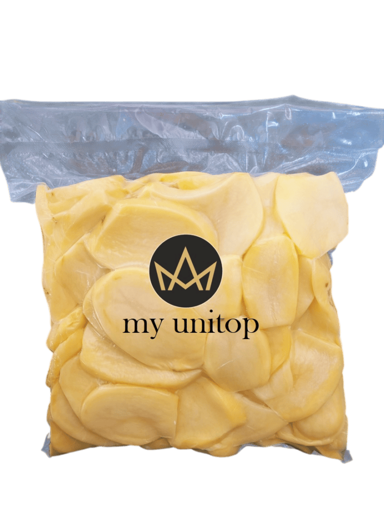Φρέσκια πατάτα καθαρισμένη και κομμένη ροδέλες ,σε συσκευασία vacuum των 5kg.